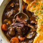 - Top with Puff Pastry: Cover the stew with puff pastry, trimming or folding edges as necessary. Brush the pastry with egg yolk and cut a few slits on the surface for steam to escape.