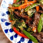 - Prepare Vegetables: While the beef marinates, prepare the broccoli, shredded carrots, snow peas, red bell pepper, and green onion, setting them aside for cooking.