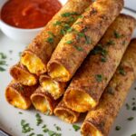Delicious homemade chicken taquitos filled with shredded chicken, cream cheese, salsa, and spinach, baked or fried to crispy perfection. Perfect for a flavorful appetizer or main course served with guacamole, sour cream, and salsa.