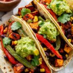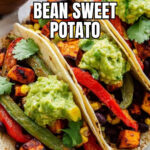 Delicious and hearty Black Bean Sweet Potato Tacos loaded with roasted sweet potatoes, black beans, colorful bell peppers, and a honey cilantro lime sauce. Perfect for a satisfying vegetarian meal with vibrant flavors and a touch of sweetness.