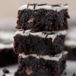 If you freeze leftover brownies, wrap them tightly in plastic wrap and place in a freezer bag. I find freezing works best without the spider web topping, so add that fresh when you’re ready to serve next time.