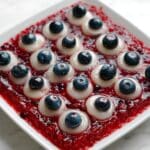 For a party, try serving these “eyeballs” inside small glass bowls with berry sauce poured tableside — the dramatic reveal always gets a great reaction. Or place them on skewers with alternating berries for a spooky fruit kabob. I once even floated a few in a punch bowl for a creepy cocktail garnish that was a big hit!