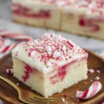This Candy Cane Sheet Cake is a festive and delicious holiday dessert featuring a moist vanilla cake infused with crushed candy canes, layered with a creamy peppermint buttercream frosting, and topped with more crushed candy canes for a delightful crunch and holiday flair.