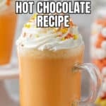 For a Halloween party, I’ve served this hot chocolate in clear mugs with orange-and-black themed sprinkles and a candy corn skewer perched on the rim. It makes for a fun presentation that kids and adults rave about! Another time, I layered whipped cream with small candy corn pieces inside a tall glass for added texture and color.