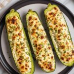 This Feta Cheese Stuffed Zucchini recipe features tender zucchini boats filled with a creamy mixture of crumbled feta, Greek yogurt, Gruyere cheese, and fresh herbs. Baked to perfection, this dish offers a delightful combination of savory flavors perfect for a light main course or a hearty side dish.