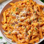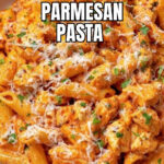 A creamy and flavorful Chicken Parmesan Pasta combining tender chicken breast pieces, a rich tomato and cream sauce, and Parmesan cheese tossed with al dente pasta for an easy and comforting meal.