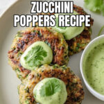 Chicken Zucchini Poppers are flavorful and juicy chicken patties combined with shredded zucchini and fresh chives, served with a creamy cilantro sauce. These easy-to-make poppers are perfect for a light meal or appetizer, cooked on the stovetop to a golden brown and finished in the oven if needed.