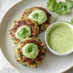 Chicken Zucchini Poppers are flavorful and juicy chicken patties combined with shredded zucchini and fresh chives, served with a creamy cilantro sauce. These easy-to-make poppers are perfect for a light meal or appetizer, cooked on the stovetop to a golden brown and finished in the oven if needed.