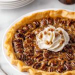 I like to keep it simple with a dusting of powdered sugar or a dollop of freshly whipped cream lightly infused with a splash of vanilla. A few extra pecan halves sprinkled on top right before serving also add a pretty touch and extra crunch.