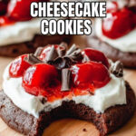 Delight in these rich and indulgent Chocolate Cherry Cheesecake Cookies featuring a fudgy chocolate base, creamy cheesecake frosting, and sweet cherry pie topping, perfect for a decadent dessert or special treat.