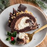 For special occasions, I’ve wrapped my Yule Log in clear cellophane tied with a festive ribbon — it makes a stunning gift or centerpiece. Another fun idea is adding marzipan mushrooms or edible gold leaf accents for that extra holiday magic.