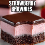 Delicious chocolate covered strawberry brownies featuring a rich chocolate brownie base topped with a strawberry-infused frosting and a smooth chocolate glaze, perfect for dessert lovers looking for a fruity twist on classic brownies.
