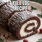 This classic Yule Log recipe features a light cocoa sponge cake rolled with whipped cream filling and frosted with a rich chocolate buttercream. Decorated with festive touches like fresh cranberries and edible mushrooms, it makes a perfect elegant holiday dessert.