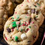 Delight in festive Christmas Chocolate Chip Cookies featuring a perfect blend of mini semi-sweet and white chocolate chips, festive red, green, and white sprinkles, and a hint of warming cinnamon. These soft, chewy cookies are ideal for holiday celebrations and easy to make with simple ingredients.