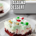 This festive Christmas Lasagna Dessert combines layers of red velvet cake, creamy sweetened cream cheese with crushed candy canes, vibrant green vanilla pudding, and cool whipped topping into a delightful holiday treat that’s perfect for parties and celebrations.