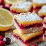 Delicious Cranberry Lemon Bars featuring a buttery shortbread crust, a tangy cranberry layer, and a bright lemon filling, perfect for a refreshing dessert or snack.