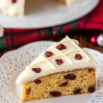Once your bars have completely cooled (patience pays off here—you don’t want the frosting to melt!), spread the frosting evenly over the top. Then melt the remaining white chocolate for the drizzle and gently drizzle it over the frosted bars. Sprinkle with a few extra dried cranberries for a pretty, festive finish. When cutting, use a sharp knife and wipe it clean between slices for neat, pretty bars — perfect for sharing or gifting.