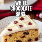 - Add topping: Chop the remaining white chocolate and melt using the same microwave method. Drizzle the melted chocolate over the frosted bars and sprinkle with dried cranberries.