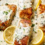 A delicious and creamy lemon salmon recipe featuring pan-seared salmon with a rich lemon cream sauce, perfect for an elegant yet easy dinner.