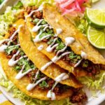 I love topping these tacos with a dollop of sour cream, some freshly shredded lettuce for crunch, and a sprinkle of chopped cilantro for brightness. Pico de gallo brings fresh acidity that cuts through the richness, and guacamole adds that irresistible creamy texture. Whenever I have pickled red onions on hand, those tangy bites make the tacos pop even more!