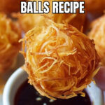 This Fried Shrimp Balls recipe features smooth shrimp paste coated with crispy spring roll wrapper strips, deep-fried to a golden brown and served hot with sweet chili sauce. A delicious appetizer or snack inspired by Chinese dim sum flavors, perfect for family gatherings or parties.