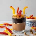 • Gummy worms can be swapped with vegan gummy candies for a fully vegan dessert.