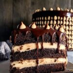 - Layer and repeat: Repeat assembly for all cake layers, alternating the salted caramel sauce and dark chocolate ganache between layers.