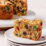 I recommend using a serrated knife to slice through the dense fruit and nuts smoothly without squashing the cake. Let the cake come to room temperature beforehand, which helps reduce crumbly edges and ensures neat slices.