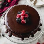 - Add Toppings and Serve: If desired, spread a batch of cooled chocolate ganache over the cake and top with homemade whipped cream and fresh berries. To slice cleanly, run a knife under hot water, dry it, and use the warm blade for smooth slices.