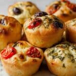 PrintFocaccia Muffins with Three Flavor Toppings Recipe