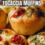 Delicious and airy Focaccia Muffins made with a simple no-knead dough, proofed overnight and topped with three flavorful options including basil pesto, rosemary and salt, and cherry tomatoes with olives and oregano. Perfect as a snack or appetizer, these golden muffins are easy to prepare and bursting with Mediterranean flavors.