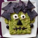 The playful name comes from the creative presentation—arranging tortilla chips, sour cream, black olives, and black beans on top to give it a fun, “Frankenstein” vibe. It transforms regular guacamole into a showstopper.