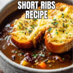 This French Onion Short Ribs Recipe freezes beautifully. I freeze it in portions without the cheesy toasts; you can toast fresh bread just before serving to maintain texture. Just thaw overnight in the fridge before reheating gently in a pot.