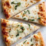 This White Pizza with Garlic Pizza Sauce combines a creamy, flavorful garlic-infused white sauce with mozzarella and parmesan cheeses on a crispy crust, topped with fresh basil for a delicious twist on classic pizza.