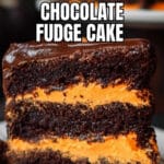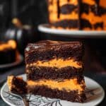 PrintHalloween Chocolate Fudge Cake with Orange Buttercream and Ganache Recipe