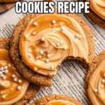 These cookies freeze beautifully — I flash freeze them first on a tray, then transfer to a freezer-safe bag. You can also freeze the buttercream separately in a sealed container. When you’re ready, thaw at room temperature for a few hours before assembling and drizzling with caramel.