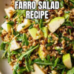 A flavorful and hearty whole-grain farro salad featuring tender farro cooked in vegetable broth, tossed with a tangy shallot vinaigrette, crisp green apple, peppery arugula, shaved Parmesan, toasted pecans, and fresh herbs for a delicious and nutritious meal or side dish.