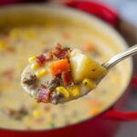 Cowboy Soup is a hearty and comforting dish packed with ground beef, potatoes, beans, cheese, and spices. This thick and creamy soup features a rich roux base and melted Velveeta for extra cheesy goodness. Perfect for a filling family meal or casual gathering, topped with cheddar cheese and optional bacon bits.