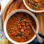 A hearty and nutritious lentil soup featuring aromatic spices, fresh vegetables, and a touch of lemon for brightness. This comforting recipe blends a portion of the soup to create a creamy texture while retaining some whole lentils for bite.