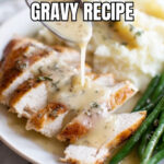 This rich and flavorful turkey gravy recipe uses pan drippings combined with butter, fresh herbs, and flour to create a smooth, savory sauce perfect for enhancing your holiday turkey or any poultry dish.