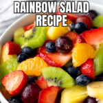 A vibrant and refreshing Honey Lime Rainbow Fruit Salad featuring a colorful mix of fresh strawberries, pineapple, blueberries, red grapes, kiwis, mandarin oranges, and optional bananas tossed in a sweet and tangy honey lime dressing. Perfect for gatherings or a healthy dessert.