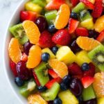 A vibrant and refreshing Honey Lime Rainbow Fruit Salad featuring a colorful mix of fresh strawberries, pineapple, blueberries, red grapes, kiwis, mandarin oranges, and optional bananas tossed in a sweet and tangy honey lime dressing. Perfect for gatherings or a healthy dessert.