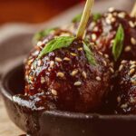 - Glaze and Garnish: Once the meatballs are cooked, brush them generously with the glaze. Sprinkle with sliced green onions and toasted sesame seeds before serving to add freshness and texture.