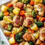 This Sheet Pan Lemon Herb Chicken and Vegetables recipe is a simple and flavorful one-pan meal featuring tender, marinated chicken breast pieces roasted alongside baby carrots, golden potatoes, and broccoli florets. Infused with fresh lemon juice and a blend of herbs and spices, this dish is perfect for an easy weeknight dinner with minimal cleanup.