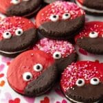 These adorable Love Bug Oreo Cookies are perfect for Valentine’s Day celebrations. Featuring Oreo cookies dipped in red melted chocolate, decorated with royal icing eyes and micro heart sprinkles, they make a festive and fun treat that’s both simple to make and delightful to share.