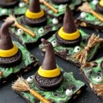 Yes! You can make the witch hats and brooms a day ahead and store them in airtight containers. Then, assemble the bark base and decorate when you’re ready to serve. It helps spread out the prep time and reduces stress on party day.