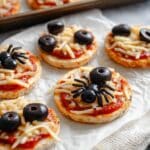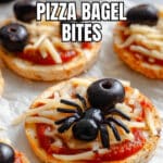 Mini Spider Pizza Bagel Bites freeze surprisingly well! After baking and cooling completely, wrap each bagel bite individually in plastic wrap and store them in a freezer-safe bag or container. When you want a quick snack, just pop as many as you like into the oven at 350°F for about 10 minutes straight from the freezer.
