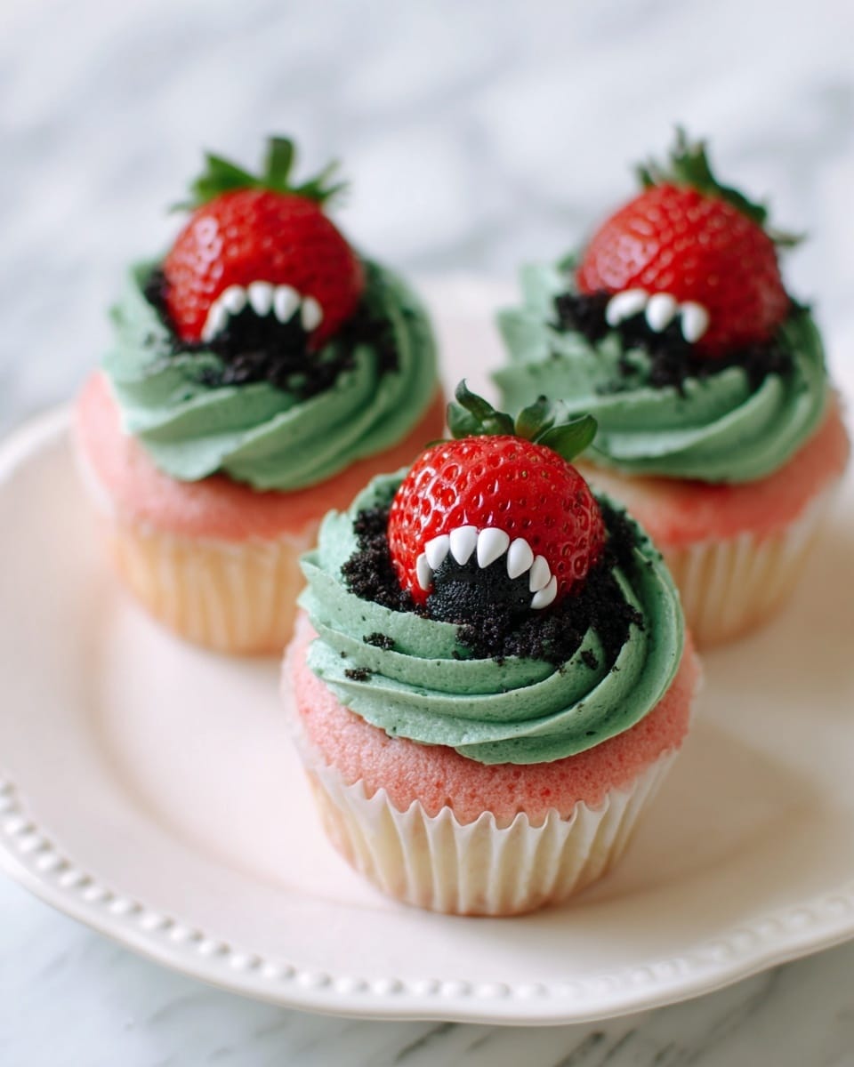 Delight in these whimsical Monster Strawberry Cupcakes featuring moist strawberry-infused cupcakes topped with vibrant green vanilla buttercream. Perfect for parties and themed events, these cupcakes combine fresh strawberries and preserves in the batter for a burst of fruity flavor, finished with a creamy, colorful frosting and fun monster strawberry decorations.
