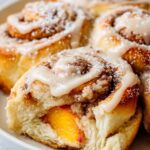 Delight in these Peach Cobbler Cinnamon Rolls featuring a soft, fluffy dough filled with sweet cinnamon-spiced diced peaches and topped with a creamy vanilla cream cheese frosting. Perfect for a comforting breakfast or brunch treat.