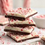 A festive and delicious Peppermint Bark made with layers of melted dark and white chocolate mixed with crushed candy canes, perfect for holiday treats or gifts.